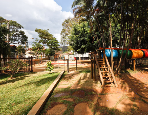 Destinado às brincadeiras infantis, movimento e corporeidade. O local oferece inúmeros desafios onde as crianças precisam criar estratégias corporais para a utilização dos brinquedos que lá estão.