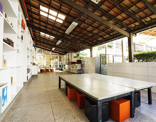 Espaço para a experimentação e utilização de diversos materiais para as mais variadas expressões artísticas das crianças da Educação Infantil.